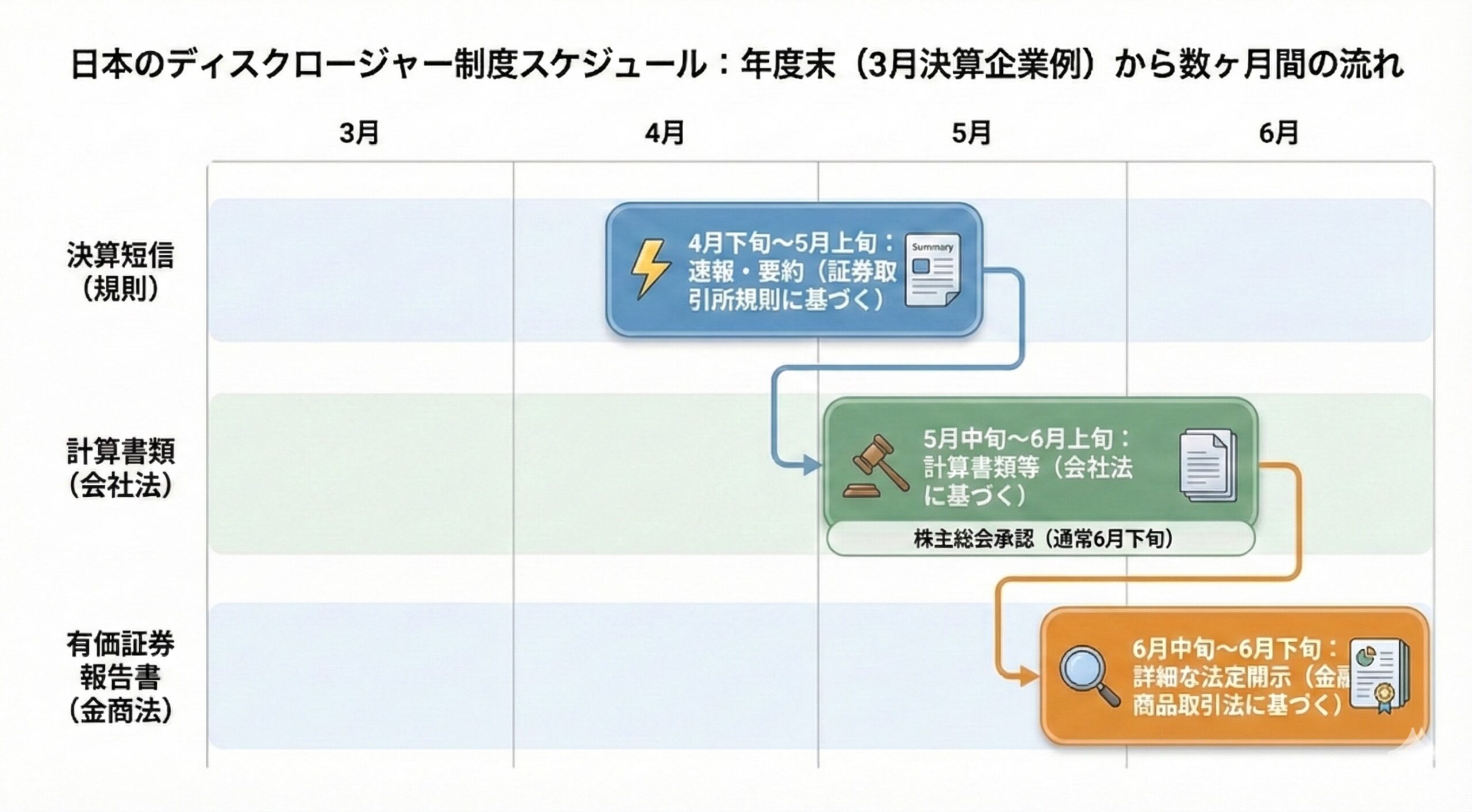 日本の開示制度の全体像:有価証券報告書・計算書類・決算短信の法規別整理