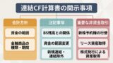 - キャッシュ・フローに関する注記: 四半期キャッシュ・フロー計算書を任意で作成しない場合に、注記により、営業活動によるキャッシュ・フローなどの重要情報の補足を求めるもの。